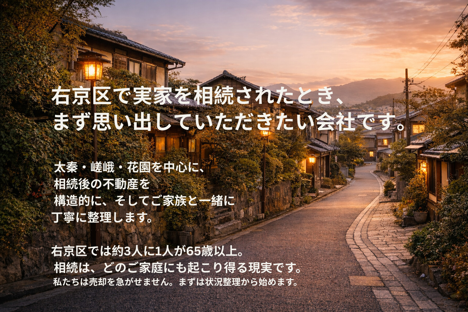 京都市右京区を拠点に、相続不動産・空き家・売却相談に対応しています。